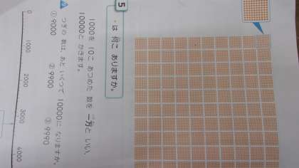 1月25日 算数で1000より大きい数について学習しています。教科書に載っている10000を表す図を見て数え方をみんなで考えました。