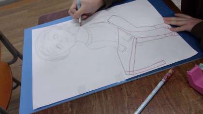 1月26日 図画工作で、木版画に取り組んでいます。絵をかいた紙と版木の間にカーボン紙を入れて、絵をなぞり版木にうつしました。できた人から彫刻刀で彫っていきます。安全に行えるよう指示をしっかりと聞いて取り組んでいました。