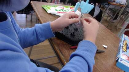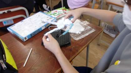 1月30日 図工で、芯材と粘土を使って「未来のわたし」を作っています。人型の芯材にポーズをつけ、粘土で体を作っていきます。完成が楽しみです。