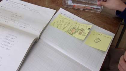 2月15日 人物を紹介するというテーマで「文章を書く」学習をしています。紹介したい人物のエピソードや自分とのかかわりを、メモとしてふせんに書きどの順番で文章を書いていくか考えました。