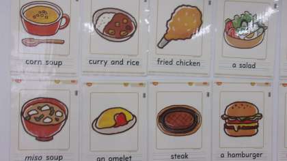 2月16日 英語でものを聞く時の表現について学びました。食べ物を題材にして練習しました。