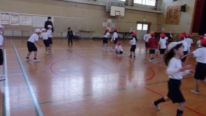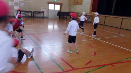 2月20日 体育でドッジボールをしました。ゲームのレベルを上げるためにボールを2球使い活動しました。