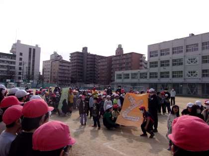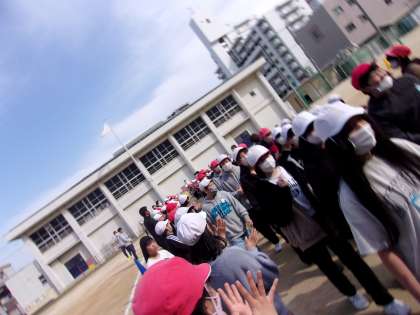みんなでドッジビーをしました。その後、1年生から5年生が、6年生に感謝の気持ちを伝えました。6年生には残り少ない小学校生活でよい思い出をつくってほしいと思います。