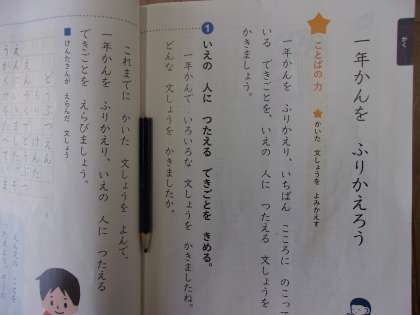 3月8日 国語で「1年かんをふりかえろう」という学習をしています。この1年で思い出に残ったこと、伝えたいことを文章に書き、人に話すという学習です。