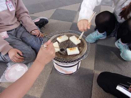3月22日 社会で昔の道具について学習してきました。昔、食べ物を焼くために使っていた七輪を実際に使ってみました。初めて使うため、なかなか火がおこせず苦労しました。火が起こせてから、もちを焼いて食べました。七輪を使ったことで現代のコンロの便利さがよくわかりました。