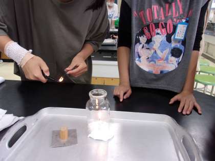4月19日 理科でものの燃え方について学習します。線香をつかって煙の流れ方を観察したり、火のついているガラス瓶にふたをするとどうなるのか実験しました。