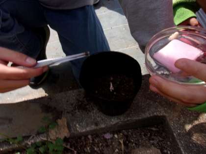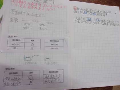 4月20日 理科で、たね(種子)から芽がでるには何が必要なのか調べる学習をしています。こどもたちはこれまでの生活経験から「水や空気、適当な温度が必要ではないか」と予想し実験してみました。実験結果を整理して、発芽に必要な条件をまとめることができました。