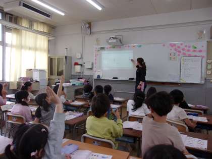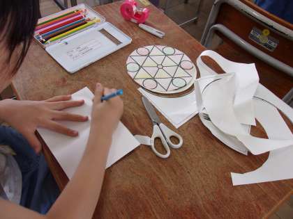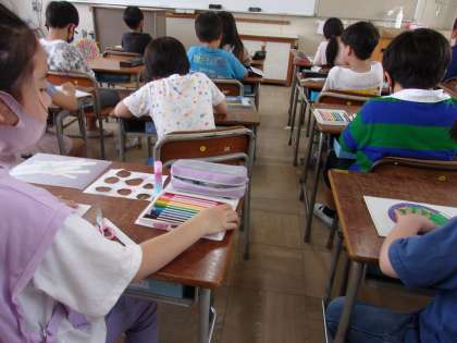 4月21日 1年生は算数で数字について学びました。2年生は図工で、もように色をぬり、はさみで切り抜きました。