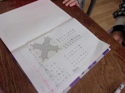 4月25日 算数で対称な図形について学習しています。今日は、線対称な図形について、対応する頂点や辺を確認しました。