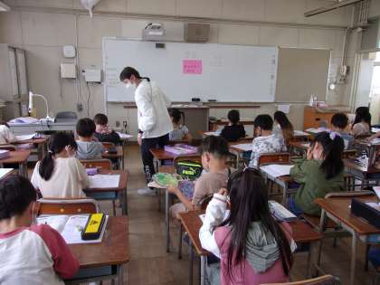 4月28日 算数で2けた+2けたの足し算を学習しました。