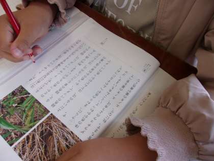 5月10日 国語で説明文「自然のかくし絵」を学習しています。内容を読み取り、質問の答えになるところ赤線で示したり、ノートに書いたりしました。