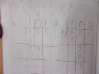 5月10日 算数で3けた÷1けたの筆算をしました。数字を書く場所がわかりやすいように工夫をして筆算に取り組みました。また、ホワイトボードに自分の考えを書き、説明もしました。