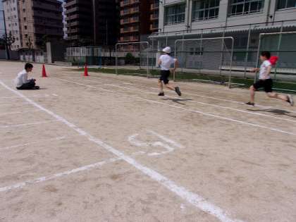5月10日 体育で50m走のタイムを計りました。みんないっしょうけんめいに走りました。
