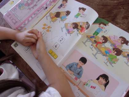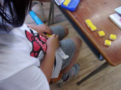 5月24日 算数で数の構成について学習しています。今日は、ブロックを使って、例えば7は4と3でできているということを学びました。