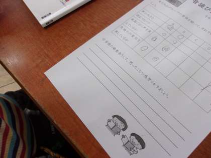 5月25日 国語で音読の聞き合いをしました。友だちの音読のよいところ、頑張ったほうがよいところを考えながらきいていました。