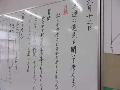 6月12日 国語で「友達の意見を聞いて考えよう」という学習をしています。自分と違う意見を聞いて比較しよりよいものにしていく力が求められています。自分の力を高めるためしっかりと取り組んでほしいと思います。