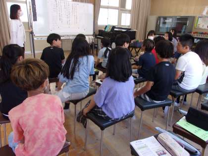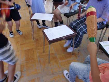 6月16日 音楽で「いろんな木の実」を打楽器で演奏しました。「まきばの朝」を歌いました。楽しく活動できました。