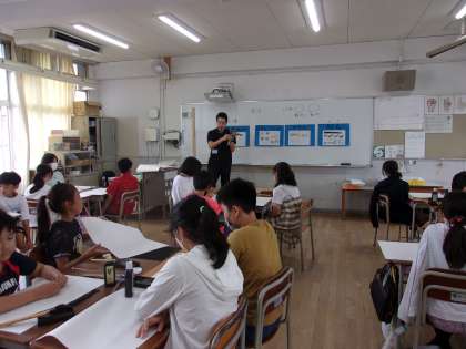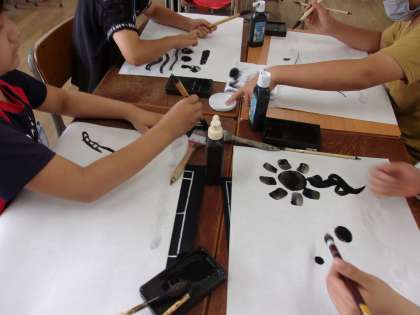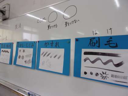 6月23日 図工で、墨を使って作品をつくります。今日は、濃淡やかすれなど技法を習得するために、練習しました。
