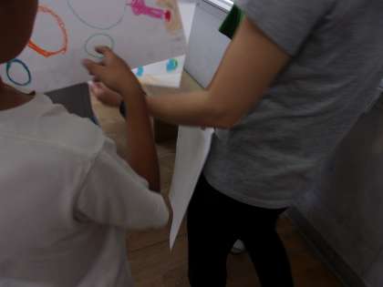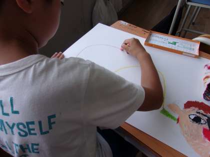 6月27日 図工でしゃぼんだまをふく人の絵を描きました。