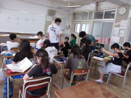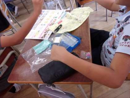 6月27日 家庭科でボタンをつけました。前回習った玉止めを使って行いました。