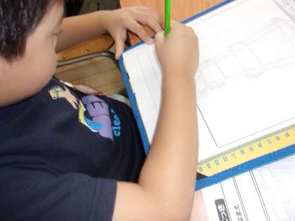 6月29日 生活科であさがおの成長を記録しています。記録カードに成長した文章を書き、あさがおをスケッチしました。