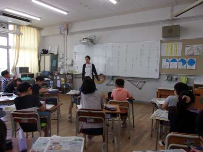 6月29日 国語で新聞を作るという学習をします。朝日小学生新聞を例に、どんな記事を書けばよいか確認しました。