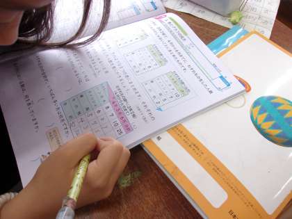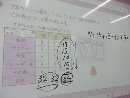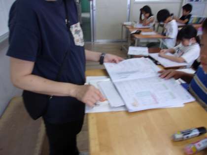 7月5日 算数で表の数字を整理する学習をしています。問題をとき、先生にみてもらいました。