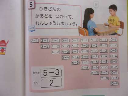 7月7日 算数で引き算の学習をしました。引き算カードを見て練習しました。