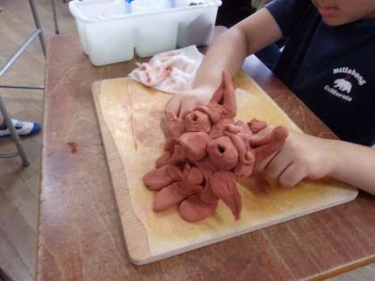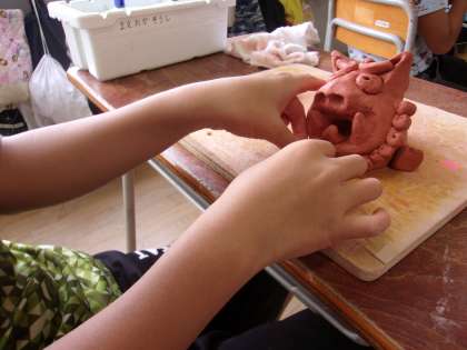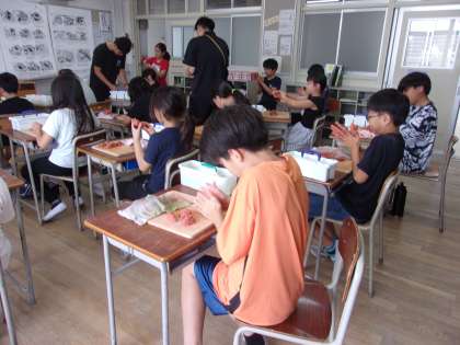 7月7日 図工でシーサーを作りました。粘土を使って形を整えました。一人ひとりの個性が現れた作品ができあがりました。