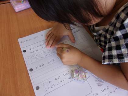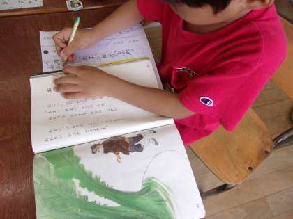 7月10日 国語で「大きなかぶ」を学習しています。物語の内容についてプリントに書いていきました。