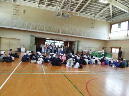 本日より5年生は奈良方面に林間学習に行きます。保護者の方に来ていただき出発式を行いました。