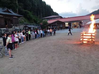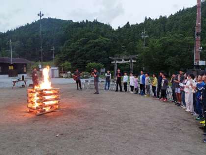 夜キャンプファイヤーをしました。歌やダンスでとても盛り上がりました。