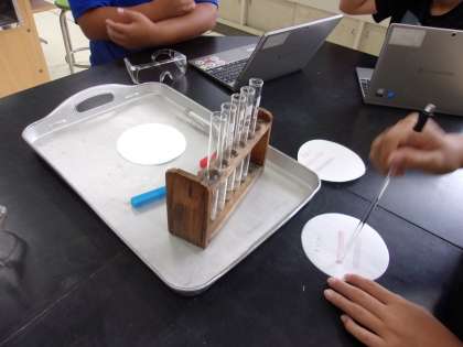 9月6日 理科で水溶液の性質について学習しています。リトマス紙で調べました。
