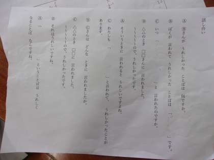 9月8日 国語で話し合いの学習をしています。例を参考に練習しました。