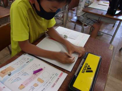 9月15日 算数で正方形と長方形の学習をしました。長方形の特徴を確認しました。国語では漢字の練習をしました。