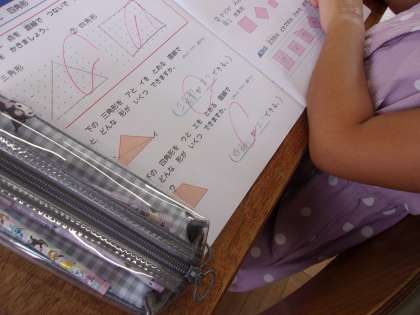 9月20日 算数で直角について学びました。正方形と長方形には直角があることを確かめました。