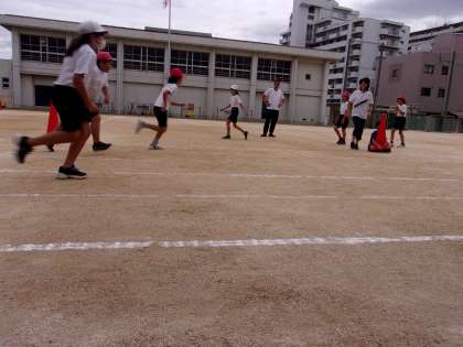 9月21日 体育で、運動会に向けて走る練習をしました。スタートダッシュを意識して練習しました。