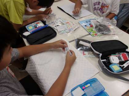9月28日 家庭科でナップサックを作ります。今日はまち針を打ちました。