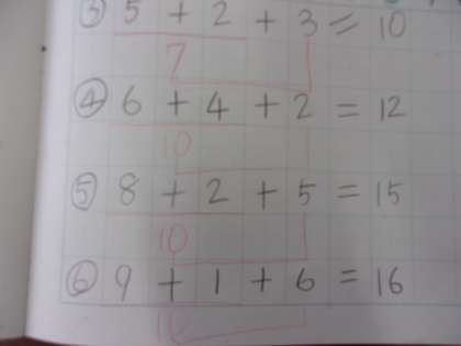 10月6日 算数で3つの数字をたす足し算を学習しました。