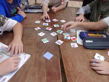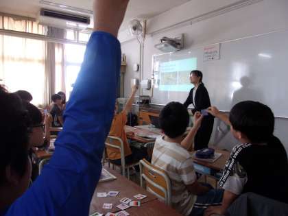 10月17日 英語で「どこに行きたいか」 Where do you want to go?の学習をしました。外国の名前や絵・写真が示されたカードを用いてゲームしながら学びました。