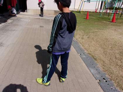 10月23日 理科で太陽の位置とかげのでき方について学習します。課題を確認してから、校庭で自分の体のどこにかげができるのか確かめました。