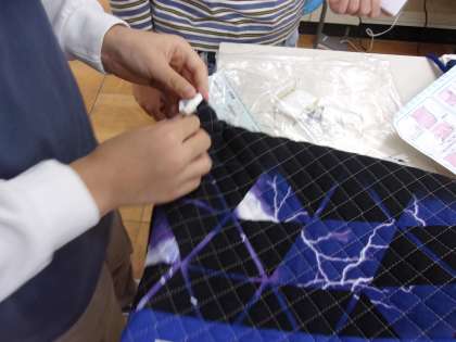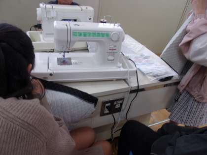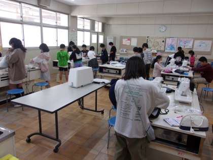 10月24日 家庭科でナップサックを作っています。背負うひもを通すところまで進みました。