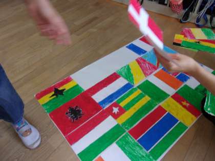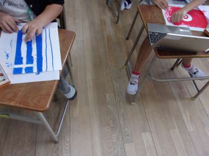 10月30日 総合的な学習の時間に、世界の国々について学習しています。世界の国旗を描きました。