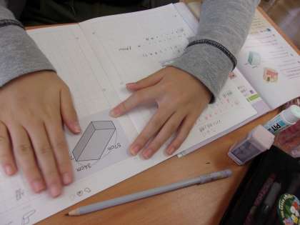 10月31日 算数でおよその面積、体積を求める学習をしました。琵琶湖の面積や米の袋の体積を求めました。