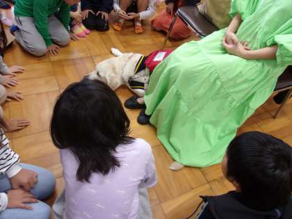 11月9日 障がいの理解のために、盲導犬について学習しました。視覚障がい者の方に講師として来ていただき、盲導犬や視覚障がいの方にどのように接すればよいのかなど教えていただきました。