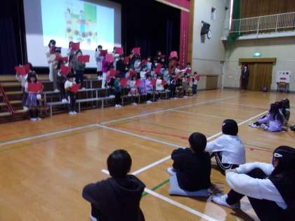 11月22日 学習発表会がありました。前半は1・3・5年でした。なかまづくり、障がい者理解からだれもが活躍できる社会をめざして、韓国・朝鮮と日本とのかかわりから差別をゆるさないことなどを発表しました。
