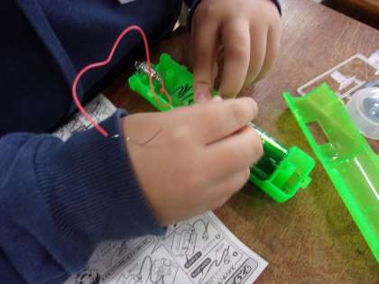 12月12日 理科で電気の回路について学習しています。回路はつなっがっていないといけないことを学び、懐中電灯を作りました。