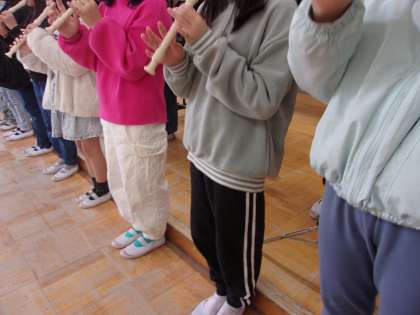 12月20日 音楽発表会をしました。曲は「Waになっておどろう」と「キリマンジャロ」です。リコーダーやさまざまな楽器で演奏しました。一人ひとり自分の役割をしっかりと果たし、一つの作品を完成させることができていました。よくがんばりました。