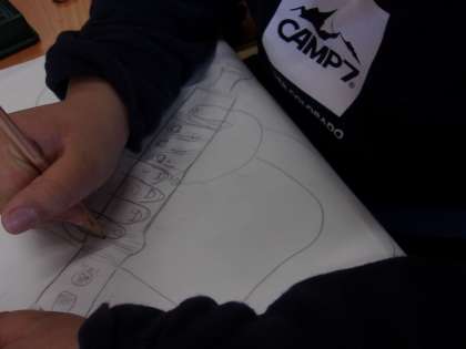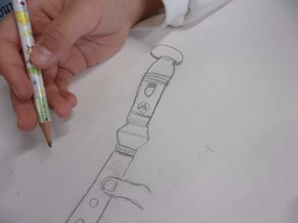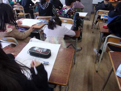 1月15日 図工で「リコーダーを演奏している自分」の絵を描きました。今日は、鉛筆で線を描きました。