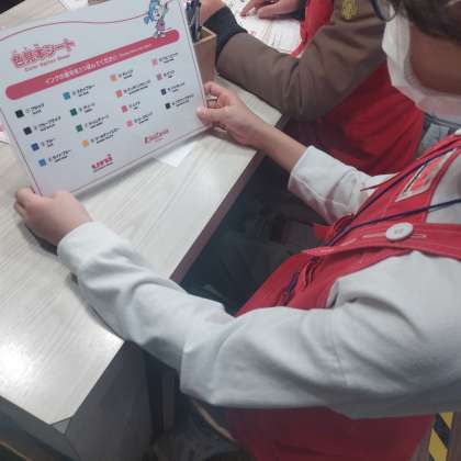 文房具制作体験で、3色ボールペンを作りました。色見本から3色選びました。